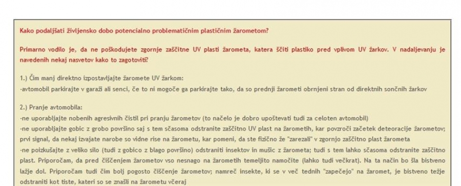 Na podlagi naših praktičnih izkušenj in izkušenj strank smo pripravili seznam nasvetov, kako plastične žaromete dolgoročno ohraniti v dobrem stanju. Dodanih je tudi nekaj nasvetov, kaj se ne sme početi...